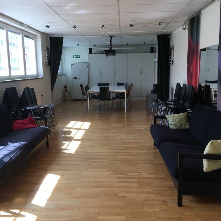 Notera: För tillfället saknar lokalen en fungerande musikanläggning, men en projektor och duk finns tillgänglig.