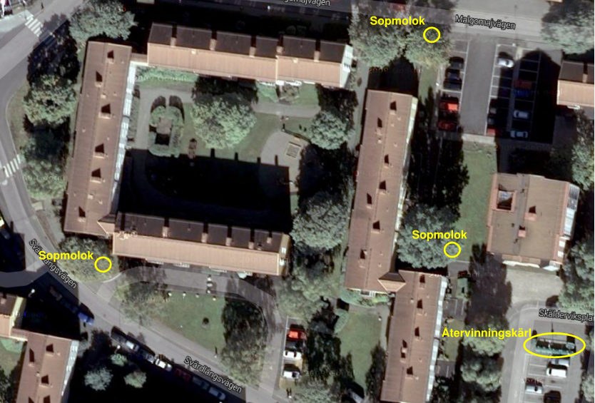 För vanliga hushållssopor, använd de tillgängliga molokerna för enkel och smidig bortforsling.