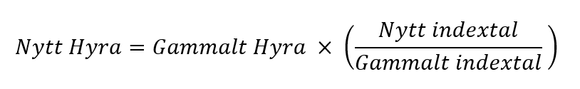 - Nytt indextal: Årsmedel av KPI för perioden förre År Oktober tills Aktuellt År September.